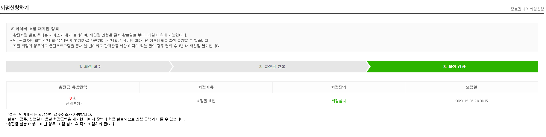 재입점 신청은 탈퇴 완료 후 1개월 후 부터 가능하다고 합니다!