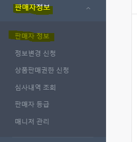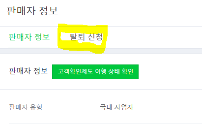 2.판매자 정보-> 판매자정보를 클릭후 탈퇴신청을 누릅니다