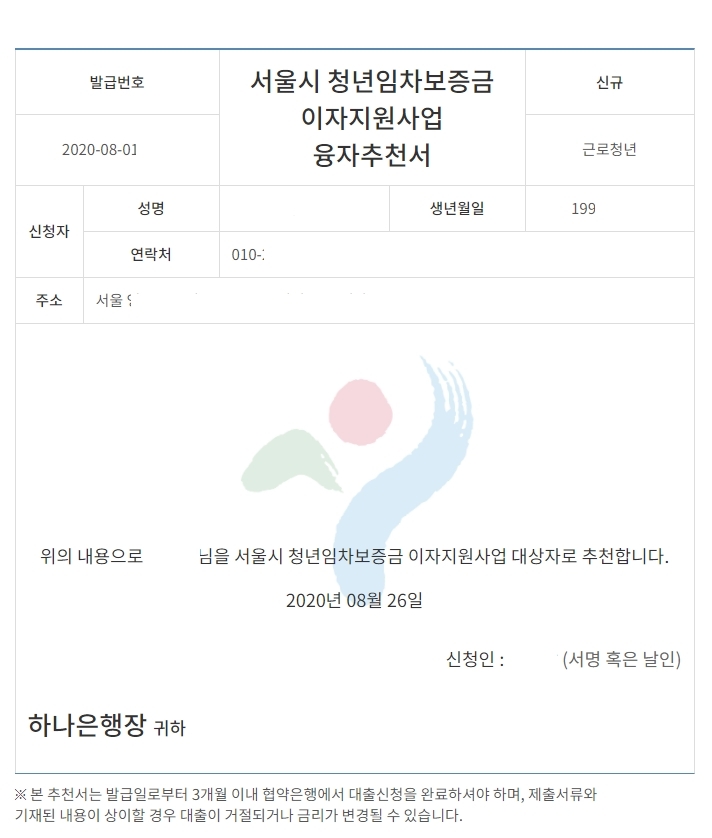 서울시 청년임차보증금 이자지원사업 융자추천서를 받아 가야 하기때문에 해당 사이트에서 신청서를 작성 및