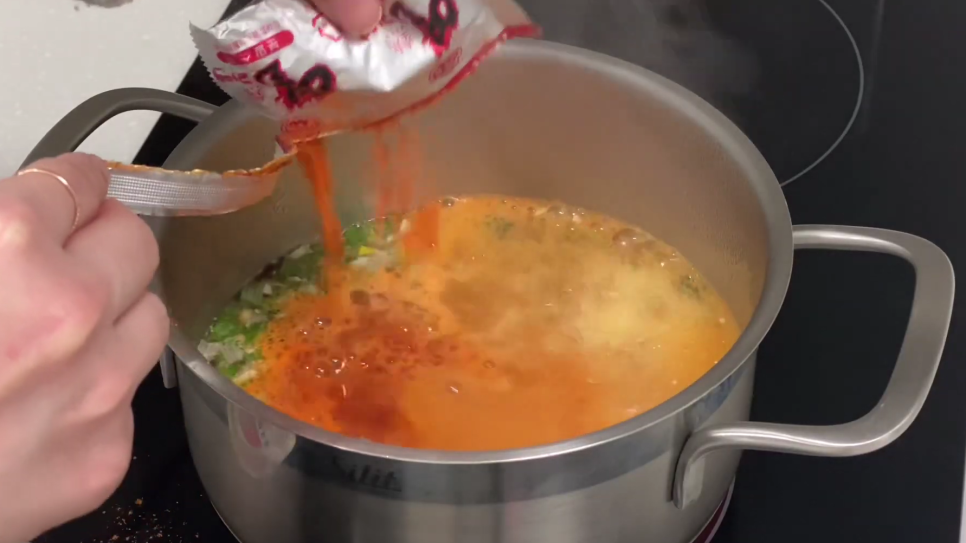 열라면 1/2 , 순두부 1/2개, 대파, 달걀, 후추