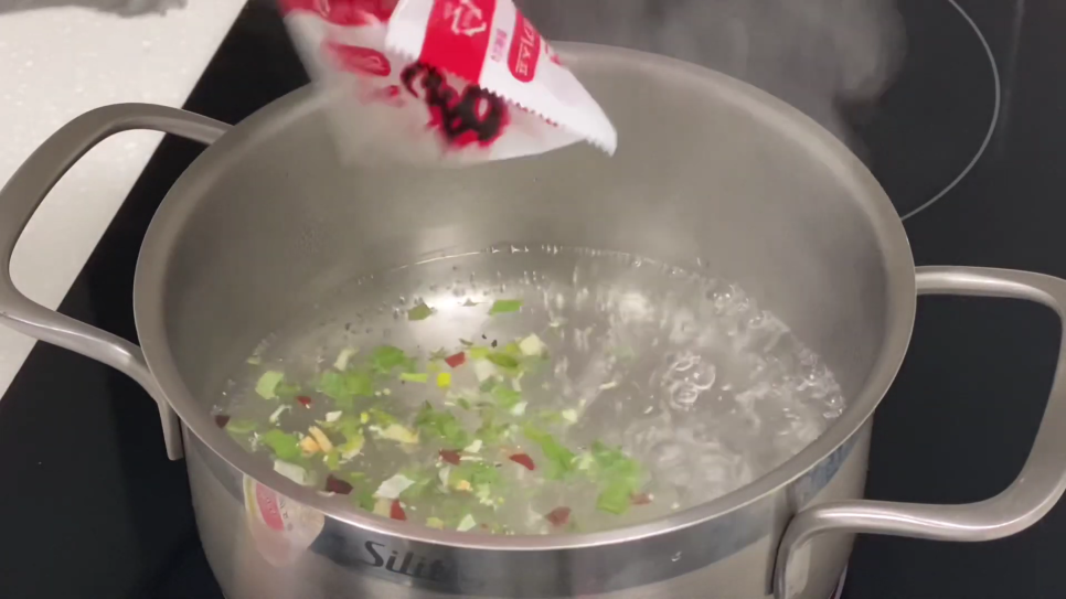 1인분만 만들어 먹을 거라 라면은 반개만 사용, 남은 라면은 보관했다가 라면사리로 이용