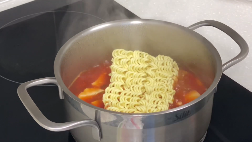 열라면을 끓여준다.